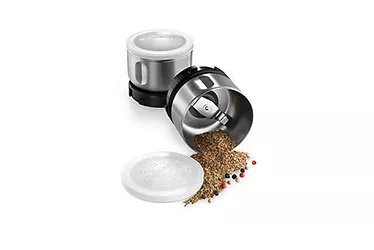 Grind whole coffee beans or spices, quickly and easily, with the KitchenAid® Coffee and Spice Grinder. The grinder's one-touch operation, on-bowl measurement markings, stainless steel blade and clear cover make grinding whole coffee beans or spices a breeze.