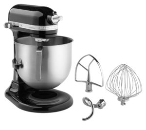 Solid, stainless-steel, commercial-grade beater, dough hook and 11-wire whip come standard and are dishwasher safe.