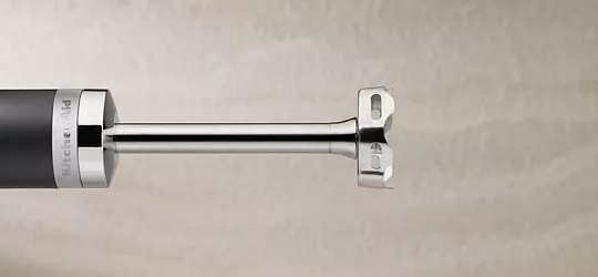Removable 7" Blending Arm with a 4-point Stainless Steel blade design efficiently blends ingredients for smoothies, milk shakes, soups, and so much more.