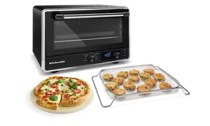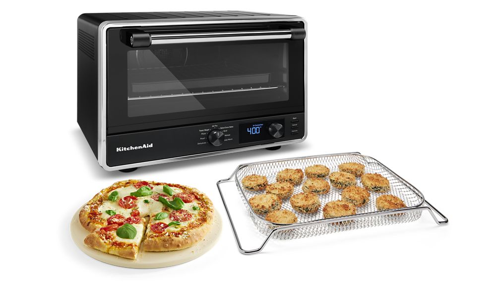 Digital Countertop Oven with Air Fry and PizzaThe KitchenAid® Digital Countertop Oven with Air Fry and Pizza was designed to offer endless healthy and fresh possibilities. With the No-Flip Air Fry Basket and 360° Air Fry System it's easy to make everything from french fries to delicate fish and so much more. This countertop oven features 10 essential cooking settings, from baking homemade or frozen pizzas, to air frying crispy snacks, the possibilities are endless.