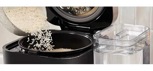 Grain and Rice CookerThe KitchenAid® Grain and Rice Cooker features innovation that takes care of the measuring and monitoring for you, with 21 presets for grains, rice and beans. With an integrated scale and water tank that work together, the cooker automatically senses the amount of grains, rice or beans you've added and then it dispenses the right amount of water to match the ideal water-to-grain ratio for what you are cooking.