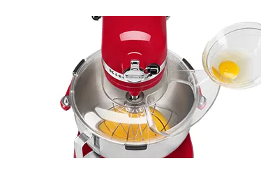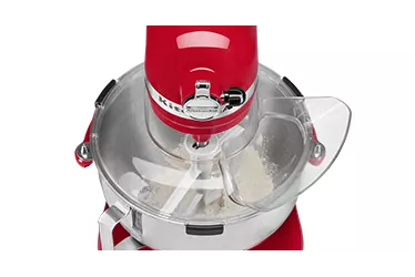 Secure Fit Pouring ShieldIntroducing the new Secure Fit Pouring Shield, designed to minimize countertop messes while you're mixing. Featuring easy snap tabs that securely attach the pouring shield to your stainless steel mixing bowl, and a large angled ingredient slide which allows you to easily add your carefully measured ingredients. Fits most* 5, 5.5 and 6 Quart KitchenAid® Bowl-Lift Stand Mixers** with stainless steel bowls. *Does not fit KN25WPBH, **Sold separately.