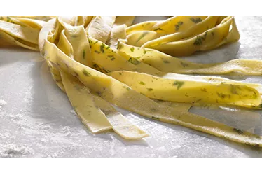 Take fresh pasta sheets and transform them into wide ribbon noodles for your favorites lasagnas and lasagnettes.