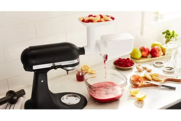 With the Sausage Stuffer Kit* (KSMSSA) or Fruit and Vegetable Strainer* (KSMFVSP). *sold separately