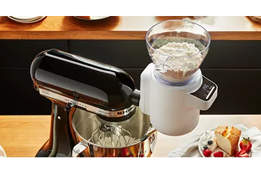 Sifter + Scale AttachmentWhether you're baking a cake for a special occasion or midweek treat for the family, you want the results to be special too. Now you can quickly and easily achieve fluffy, consistent results with the Sifter + Scale Attachment that was designed to work with all household KitchenAid® Stand MIxers*. This all-in-one baking tool that accurately measures, thoroughly sifts and automatically adds ingredients directly to your mixer bowl in just one step. *sold separately.