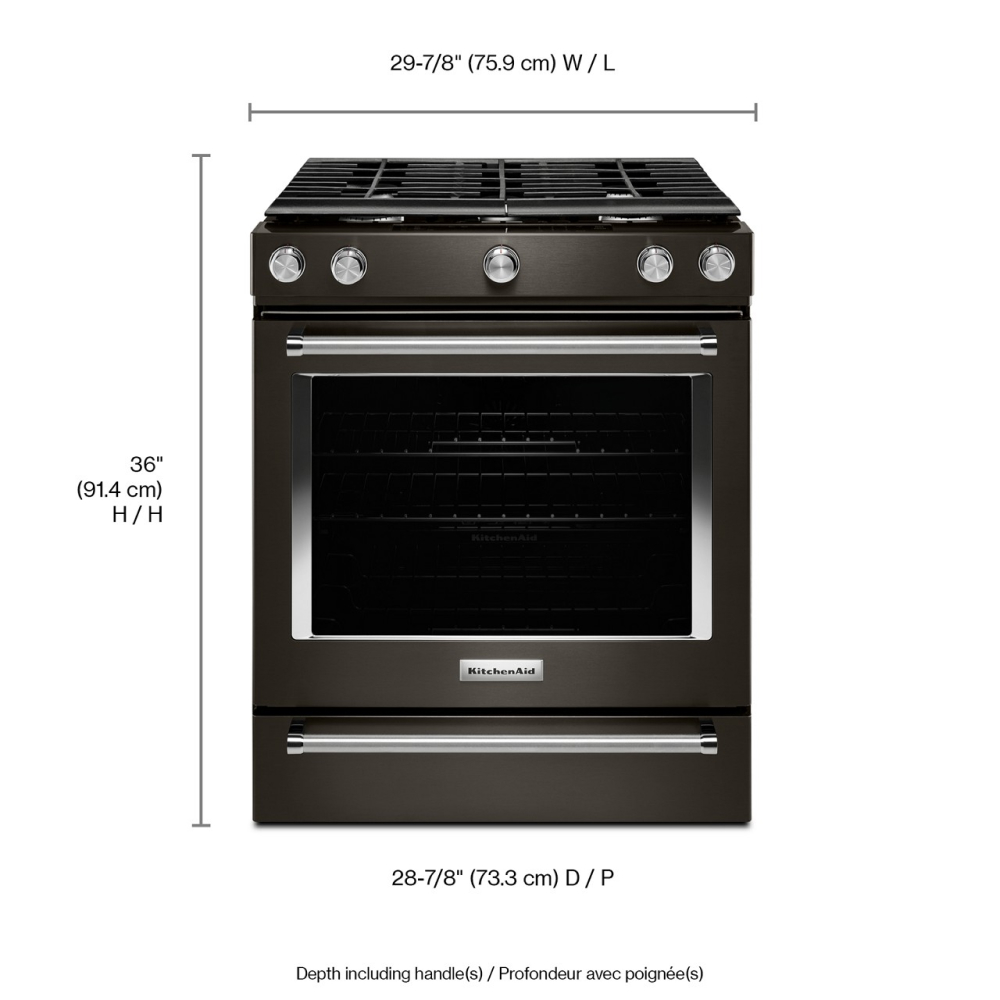 This gas slide-in range provides a large cooking capacity that’s perfect for multiple dishes at once.