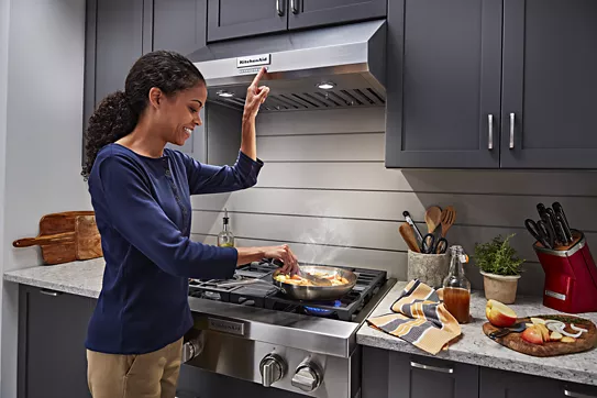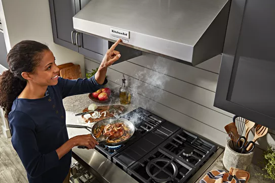 Provides intuitive assistance to help keep smoke and steam from building up in the kitchen. If the hood's sensor detects high-heat cooking on multiple burners while the controls are off, it will automatically turn on the fan and set it to Power Boost.
