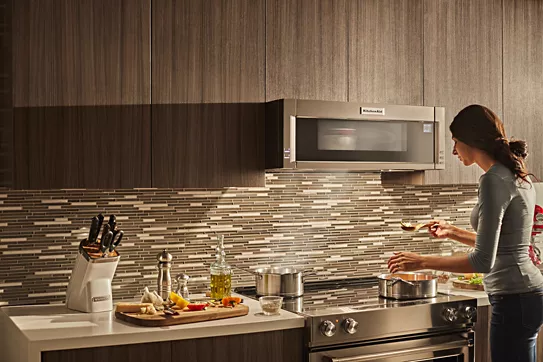 combines a microwave and hood in the undercabinet space normally occupied by a range hood alone, with a height of just 10.3". It lets you eliminate your countertop microwave to open up valuable counter space for food preparation.