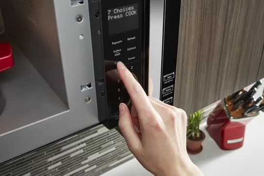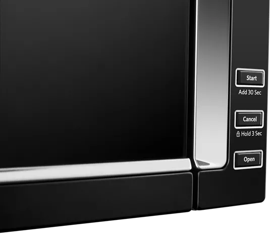 make it easy to choose cooking settings when opening the microwave to place food inside. When closed, controls are hidden behind the door for a sleek exterior look.