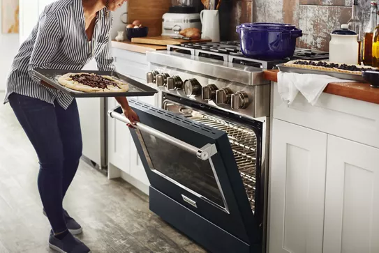 satisfies the needs of the most demanding cooks by combining the precise control of a gas cooking surface with the even baking, roasting and broiling of an electric oven.