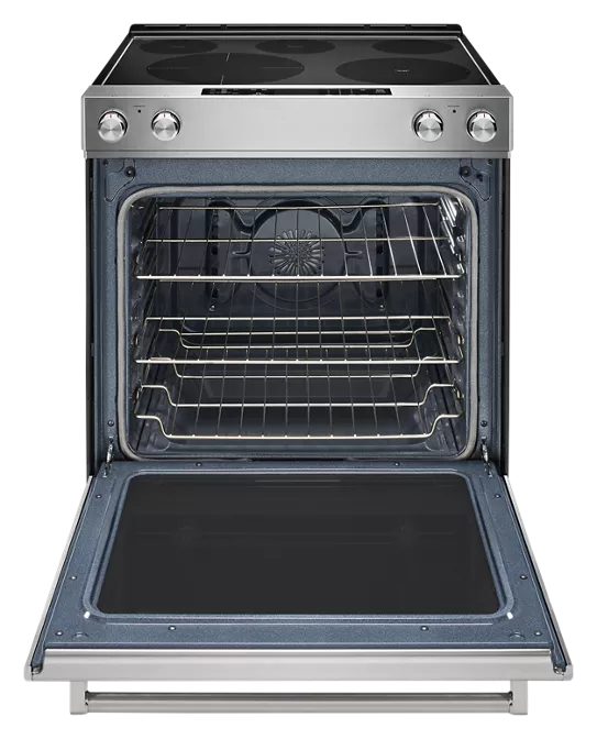 This electric slide-in range provides a large cooking capacity that easily handles multiple dishes at once.