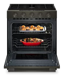 Enjoy a range of possibilities with our most powerful KitchenAid 30-inch Gas Range available, featuring the industry’s most powerful and largest 2-in-1 burner for an unparalleled and versatile cooking experience. Convection Cooking Modes help you get consistent results with optimal temperatures. A Steam Bake mode works with the included steam rack to provide additional moisture during baking, so you can enjoy Basque cheesecake and other delicious desserts. The range is designed to be personalized with a curated palette of exterior finishes and mixed metal hardware. It’s also a Wi-Fi-enabled Smart Appliance model with smart features and mobile app experience.