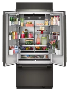 wows from the inside out with premium craftsmanship and design. Metallic touchpoints, smoked crisper bins and ultra-bright LED lighting pop against the stunning silver-colored finish.