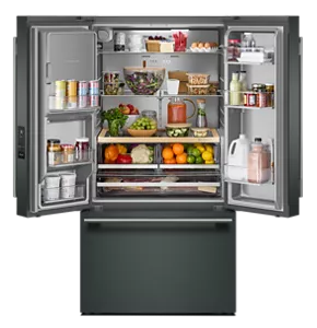 from this impressively large French Door Refrigerator makes room for every farmer's market haul and brings convenience with customizable storage spaces for your unique ingredients.
