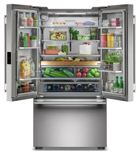helps keep ingredients fresh and flavorful. This single evaporator system uses sensors to continually monitor temperature levels in both the refrigerator and freezer and adapts the flow of cold air between them to maintain optimal temperatures throughout.
