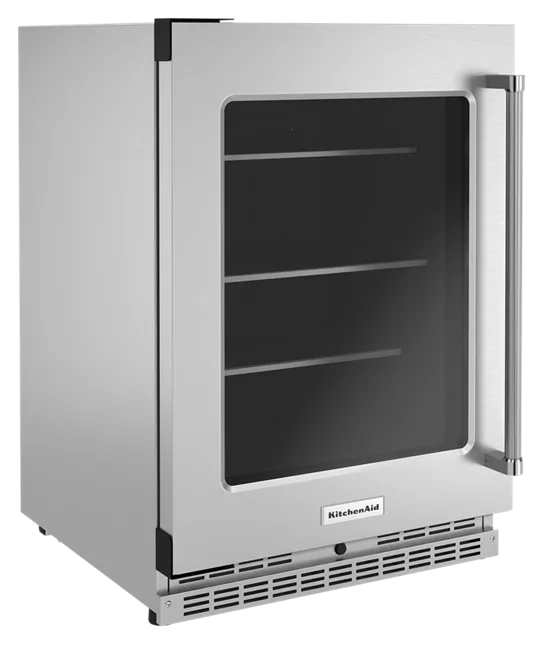 24" Undercounter Refrigerator with Glass Door and Shelves with Metallic Accents