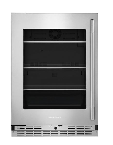 24" Undercounter Refrigerator with Glass Door and Shelves with Metallic Accents