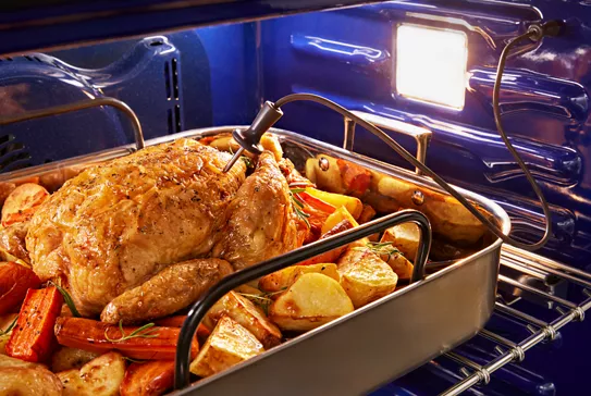 Takes the guesswork out of roasting meat just the way you like, from rare to well done. It continuously monitors cooking progress and automatically turns the oven off when your desired temperature is reached.