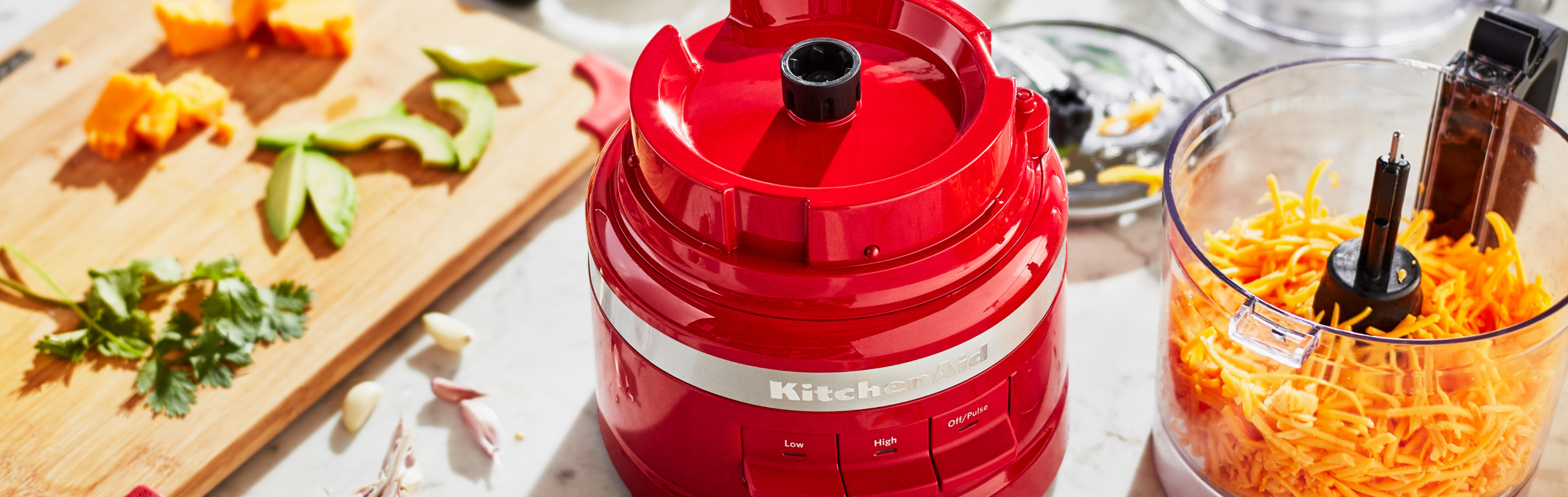 Using your food processor to grate cheese is an easy process that could change the way you create in the kitchen. Simply attach the shredding disc to your food processor and slowly feed a large chunk of cheese through the feed tube. Check your processor’s owner’s manual for model-specific instructions on how to attach and use the shredding disc. If you’re looking to upgrade, browse all KitchenAid® food processors.