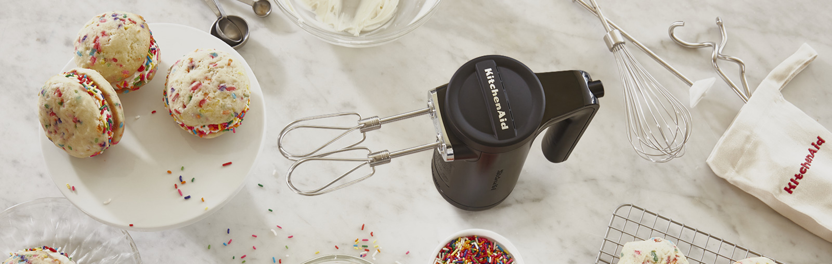 Nothing beats a hand mixer for common kitchen tasks and creative recipes alike, and KitchenAid brand offers multiple mixers to help with whipping, mixing, kneading and more. KitchenAid® hand mixers come in a variety of speeds with different accessory packages to suit your cooking and baking needs.