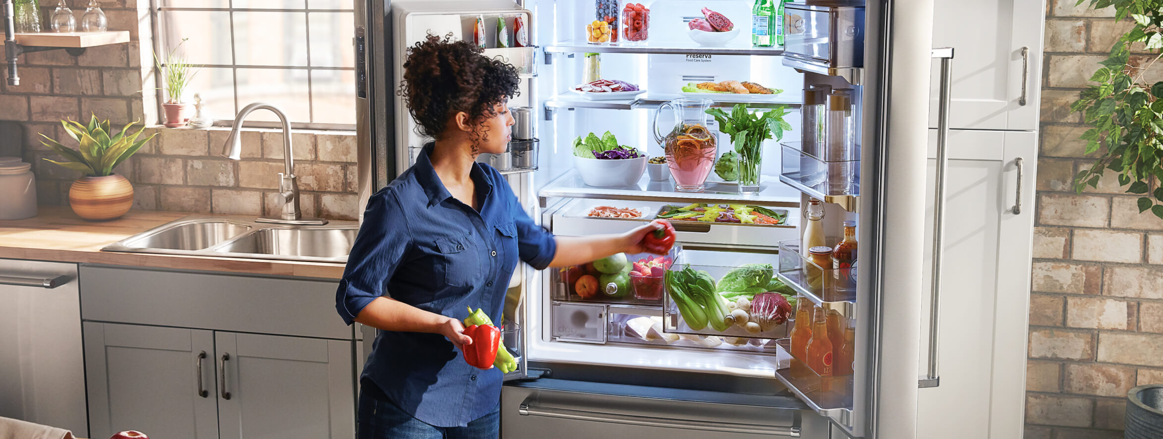 To reduce food waste, designate an “eat first” bin in your refrigerator as a reminder to keep this food top-of-mind for use. This minimizes the chances of perishable items expiring before you had a chance to use them in your creative recipes. Learn how to remove refrigerator smells if the foods do expire and cause a bad fridge smell.