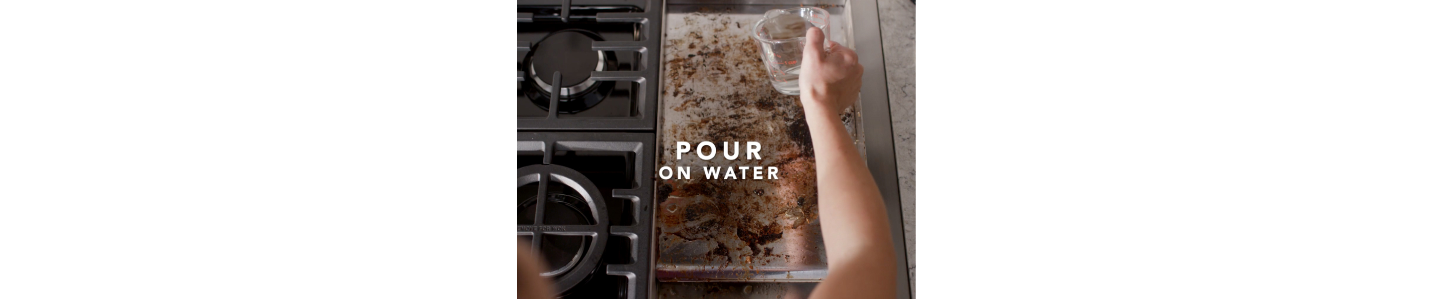 Using a measuring cup, pour up to 1 cup tap water over the soiled area starting at the back, allowing the water to run toward the drip tray in the front. Allow the water to bubble on the griddle for 3–4 seconds to help loosen up grease and any stuck food particles.