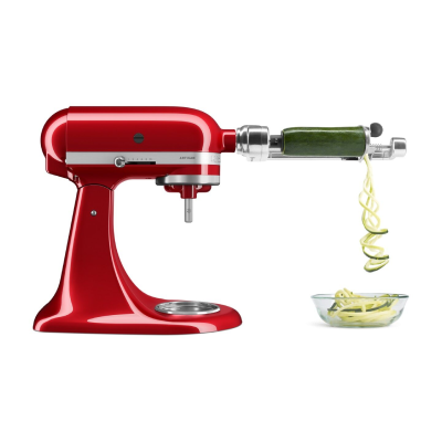 Veggies can be spiralized by your stand mixer in about five minutes. The KitchenAid® Spiralizer attachment can also peel your produce if your recipe calls for peeling.