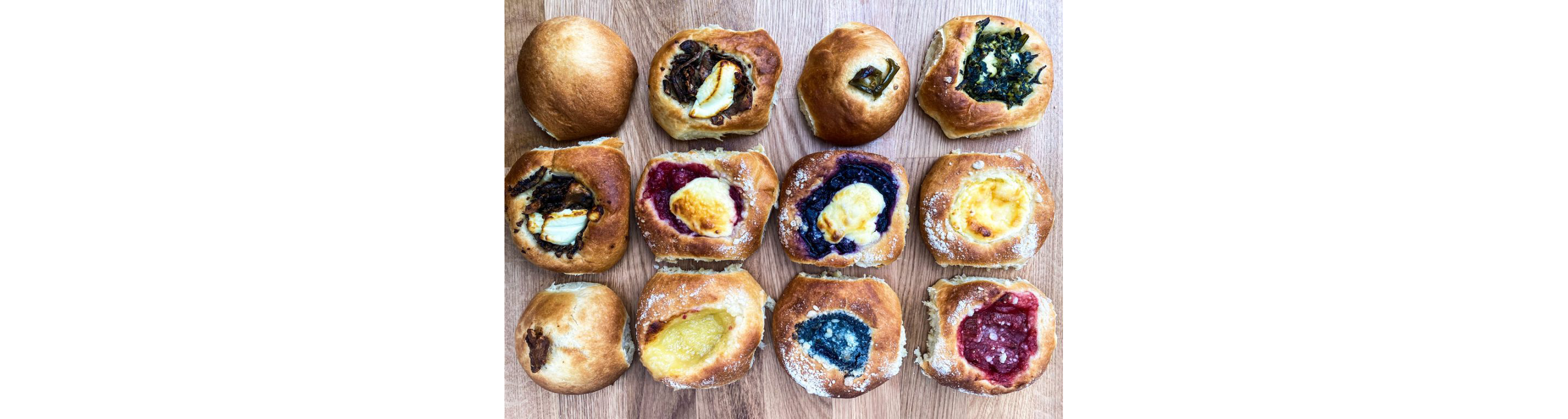 “In 2012, everything in Brooklyn was basically handcrafted and artisanal,” Stanford recalls. “It was before everything was free-range and organic. Everything was fancy, and so I really wanted to do something like a kolache which is kind of mass produced in Texas, but do it in an artisanal way. So we get all of our sausage shipped in from Meyers Elgin Sausage and Elgin, Texas. And we do everything in a super artisanal way. The flavors that you see – like the sausage, jalapeno cheese, sausage cheese – are obviously the more authentic. Also the poppy seed and sweet cream cheese. I wanted parents to be able to grab something on the way to school – so we do a peanut butter and jelly. And I needed vegetarian flavors. So we started doing a spinach and feta and mushroom with goat cheese; you won’t see those in Texas. And then and then we started just trying to do more seasonal things to rotate it. [In winter], we’re doing a candied pecan and apple and in January it’ll be citrus season, so we’re going to start doing a Meyer lemon curd. And this summer we’ll do strawberry rhubarb.”