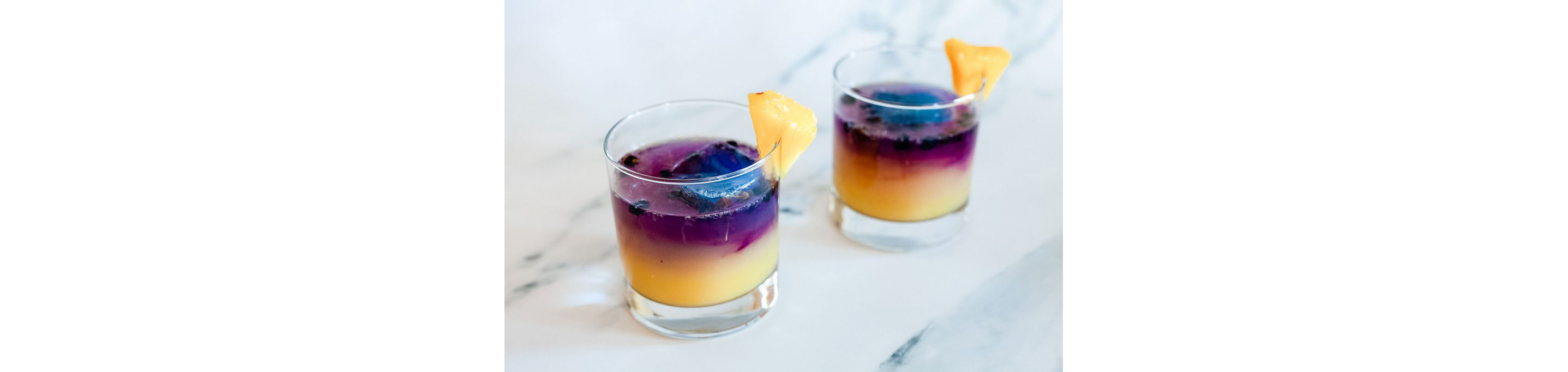 Butterfly pea flower’s intense color is released when its made into a tea, so it’s the perfect ingredient for drinks. Once brewed, you can use the tea to create galaxy cocktails, add frothy milk as if you were creating a midnight blue London Fog, or freeze them to create naturally sapphire colored ice cubes. You can also incorporate butterfly pea flower tea into your cooking, using it as an ingredient anywhere you’d use tea to enhance flavor. You can even cook rice in butterfly pea flower tea to create all-natural blue rice.