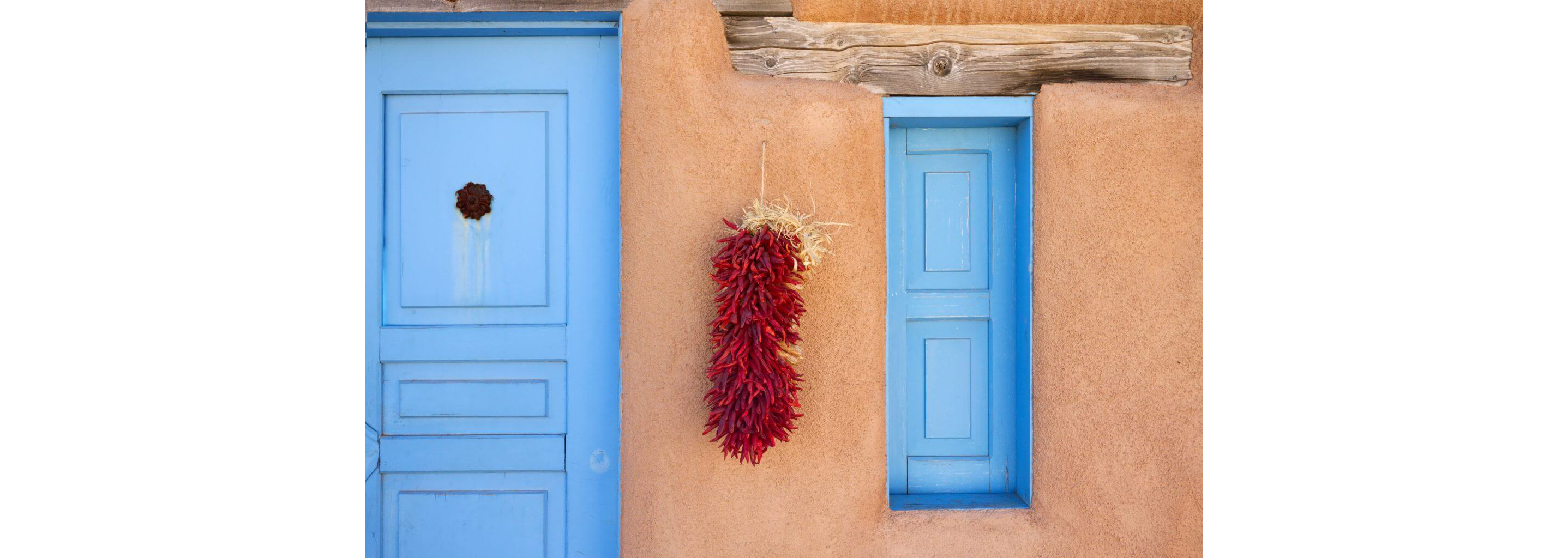 The difference between New Mexican red and green chiles is just a matter of time. Chiles start out green and as they ripen, they turn red. In our home, we often follow the Santa Fe tradition and eat our green chiles fresh or roasted. Red chiles are dried into flakes or powders, and both are turned into zesty sauces. For fun, locals have labeled a combination of the two sauces as “Christmas.”